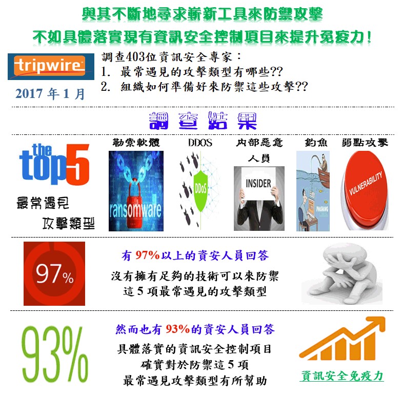 這不是資訊安全防禦的萬靈丹~但是可以明顯的提升資訊安全防禦的免疫力;降低面對這5項攻擊類型的風險。