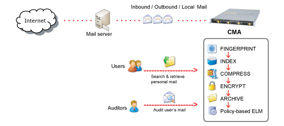 Cellopoint Mail Archiver (CMA) 是電子郵件備份歸檔方案,採用 CelloLabs? 開發之 CelloOS? 技術,有效率地做好電子郵件索引與備份歸檔,全面達成法規遵循,並大符降低郵件伺服器儲存成本、提高管理效率;其彈性的政策引擎可滿足系統管理者、稽核員及個人做直覺簡單地郵件檢索與調閱,增進數位資產保全與減低組織資安風險。
